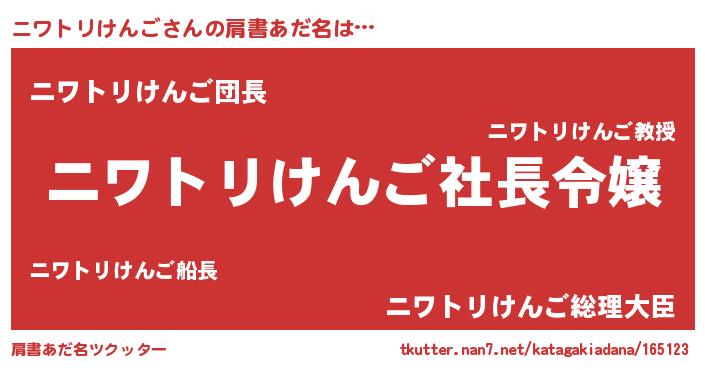 | 胡散臭い通販商品みたいなあだ名 | 『必ず成功する霊験あらたかなお札…その名も「ニワトリけんご」』 |