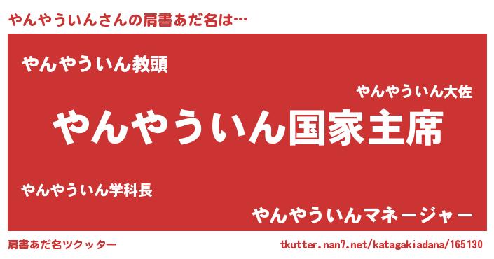 | 意味不明あだ名 | 『やんやういんフォーエバー』 |
