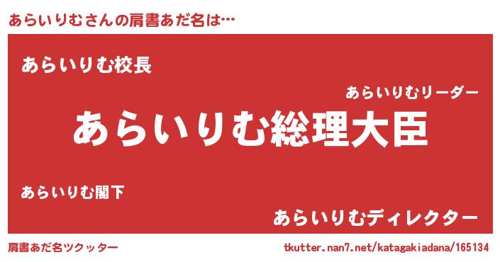 | 意味不明あだ名 | 『あらいりむフォーエバー』 |