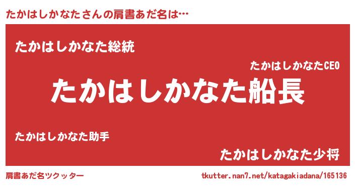 | 意味不明あだ名 | 『自称たかはしかなた』 |