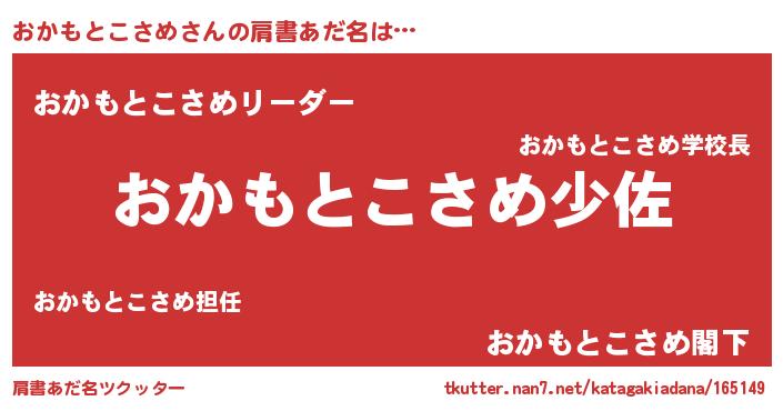 | ヘコむあだ名 | 『おかお』『おかもとこさめ(遠い目)』 |