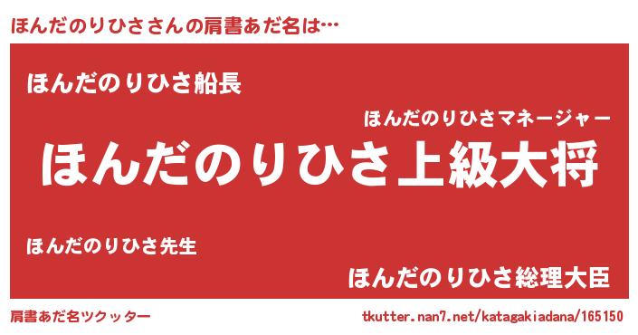 | 男性向けラノベタイトル風あだ名 | 『転生したらほんだのりひさだった件』 |