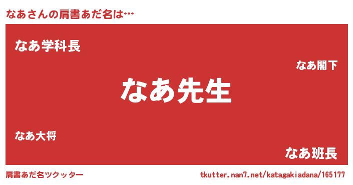 | 意味不明あだ名 | 『永久保存なあ』『眠気覚ましガムなあ味』 |