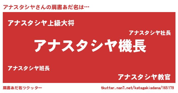 | 男性向けラノベタイトル風あだ名 | 『うちのアナスタシヤが世界を掌握している!』 |