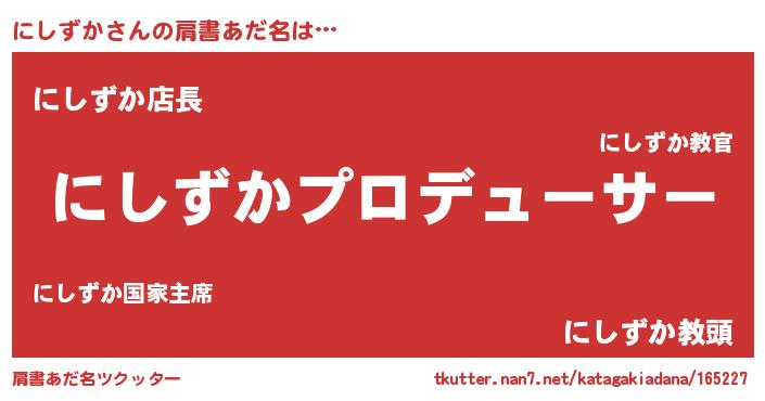 | 男性向けラノベタイトル風あだ名 | 『にしずかに滅ぼされるだけの簡単なお仕事です』 |