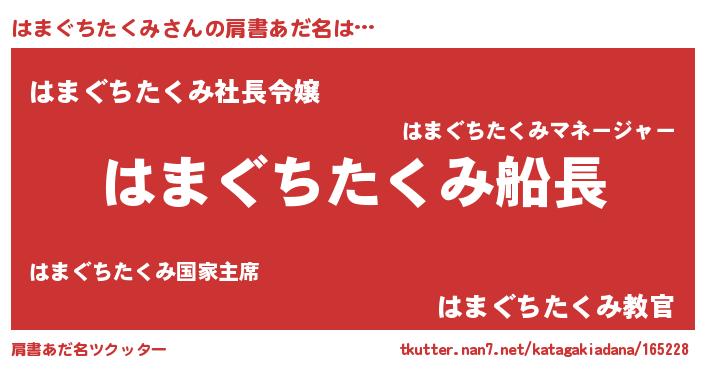 | 欧米人風あだ名 | 『はまぐちたくみ・ステッグマイヤー』 |