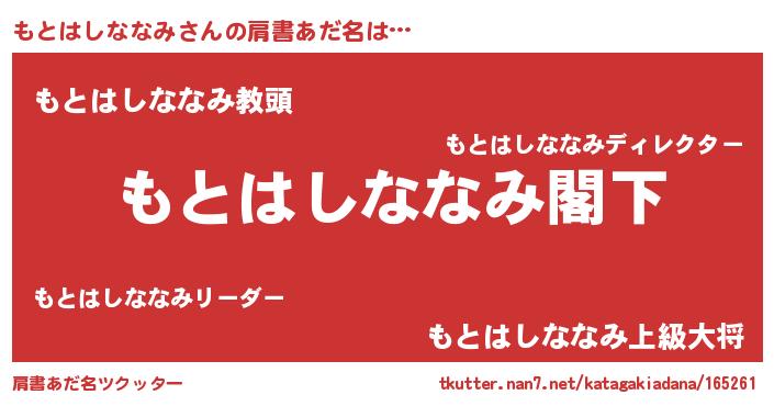 | ヘコむあだ名 | 『もとはしななみ(笑)』『もと太郎』 |