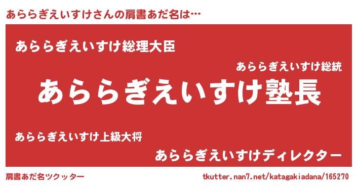 | ポケモン風あだ名 | 『ヒアララギエイスケ』『アララダネ』 |
