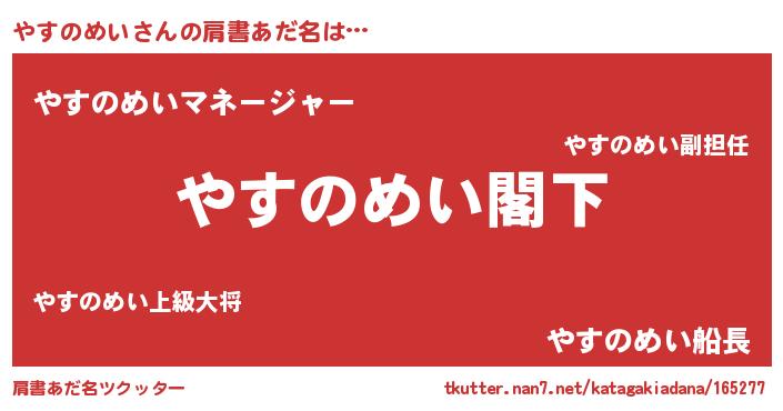 | 欧米人風あだ名 | 『ケンブリッジやすのめい』 |
