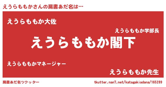 | 女子向けラノベタイトル風あだ名 | 『えうらももかなんてお断りですっ。』 |