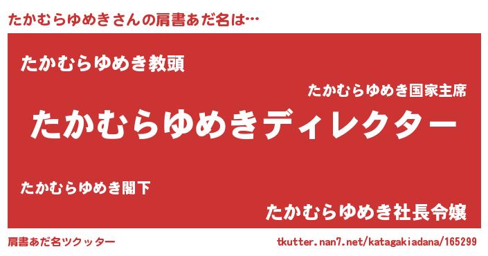 | 男性向けラノベタイトル風あだ名 | 『たかむらゆめきに滅ぼされるだけの簡単なお仕事です』 |