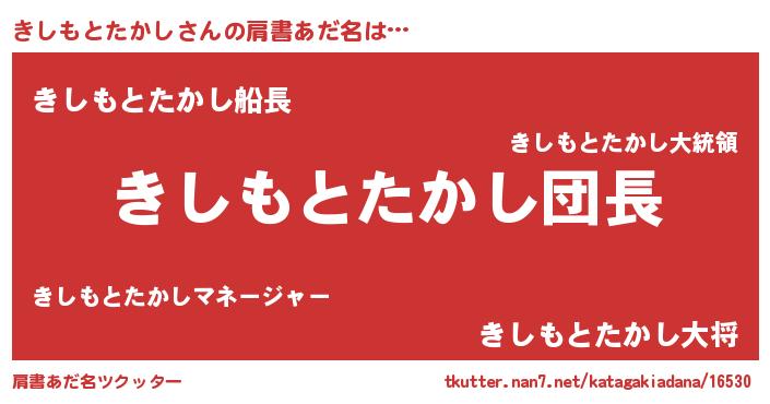 | 男性向けラノベタイトル風あだ名 | 『きしもとたかしの嫁は女の子じゃないと思った?』 |