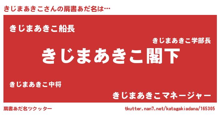 | 男性向けラノベタイトル風あだ名 | 『Re:きじまあきこから始める異世界生活』 |