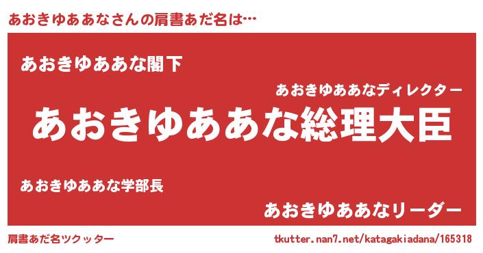 | 男性向けラノベタイトル風あだ名 | 『やはりあおきゆああなの青春ラブコメはまちがっている 』 |