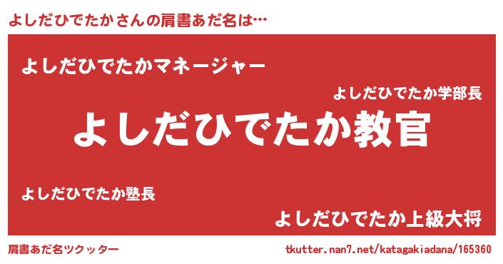 | 男性向けラノベタイトル風あだ名 | 『この素晴らしい世界によしだひでたかを!』 |