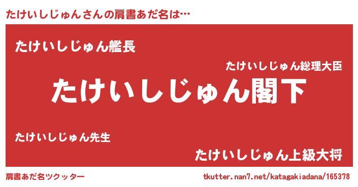 | 恥ずかしいあだ名 | 『タケイシジュンデラックス』『たけちん』 |