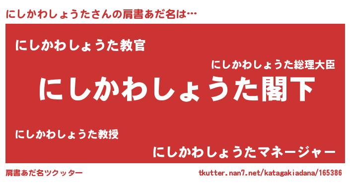 | 意味不明あだ名 | 『自称にしかわしょうた』 |