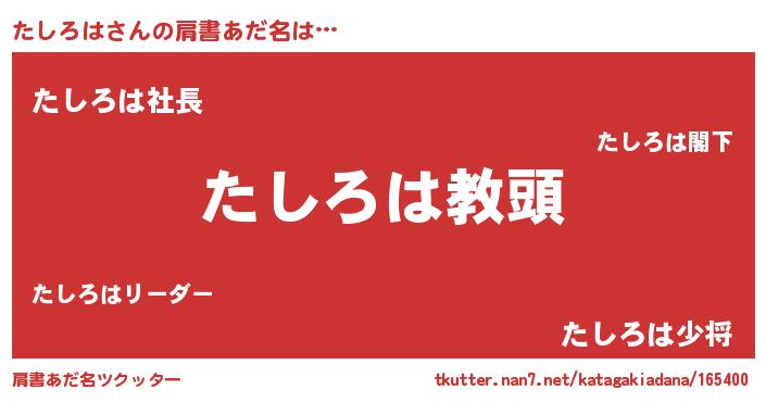 | ヒーロー風カッコイイあだ名 | 『ネオタシロハ』『スーパータシロハ』 |