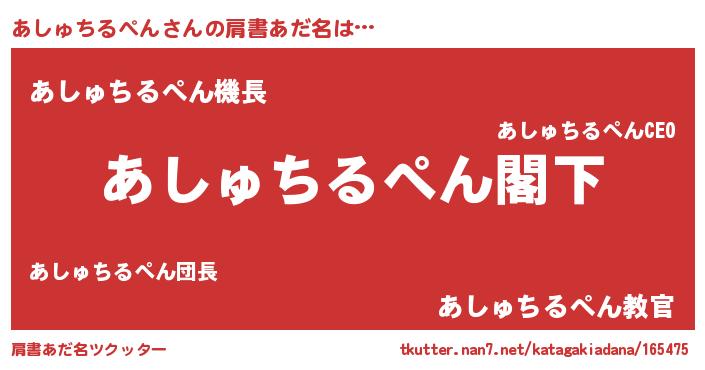 | 女子向けラノベタイトル風あだ名 | 『あしゅちるぺんアンティーク』 |