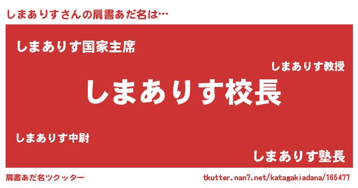 | 意味不明あだ名 | 『永久保存しまありす』 |