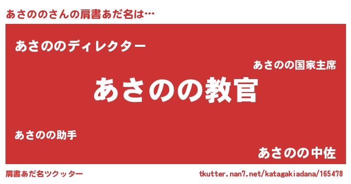 | 男性向けラノベタイトル風あだ名 | 『この素晴らしい世界にあさののを!』 |