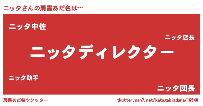 男性向けラノベタイトル風あだ名 | 『ニッタに滅ぼされるだけの簡単なお仕事です』 |