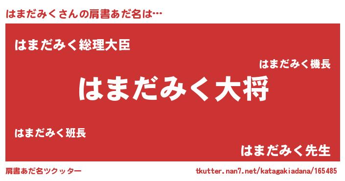 | ヘコむあだ名 | 『豆乳』『はまだみく(笑)』『はまお』 |