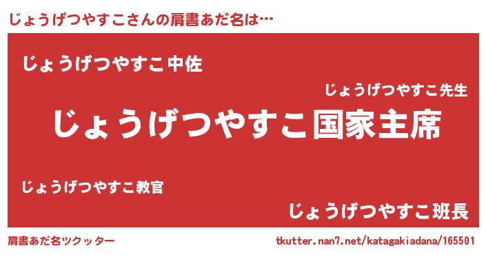 | 意味不明あだ名 | 『じょうげつやすこフォーエバー』 |