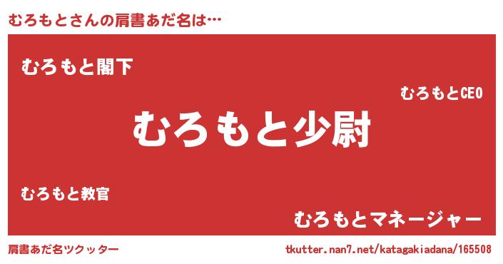 | 男性向けラノベタイトル風あだ名 | 『ムロモトスレイヤー』『むろもとの憂鬱』 |