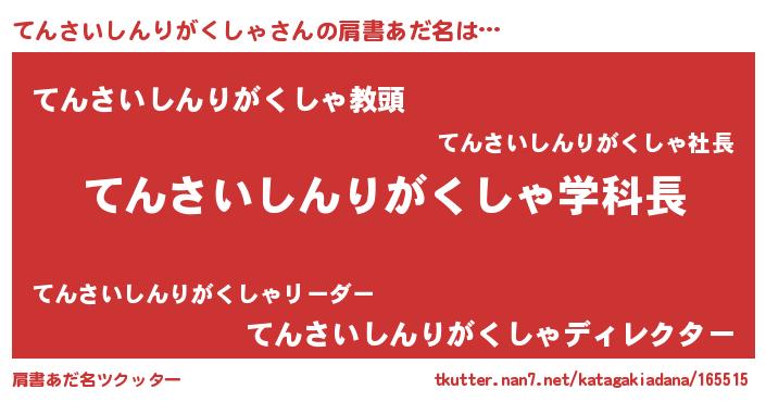 | ヘコむあだ名 | 『てんさいしんりがくしゃ(苦笑)』 |