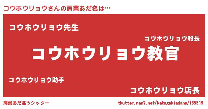 | 男性向けラノベタイトル風あだ名 | 『この素晴らしい世界にコウホウリョウを!』 |
