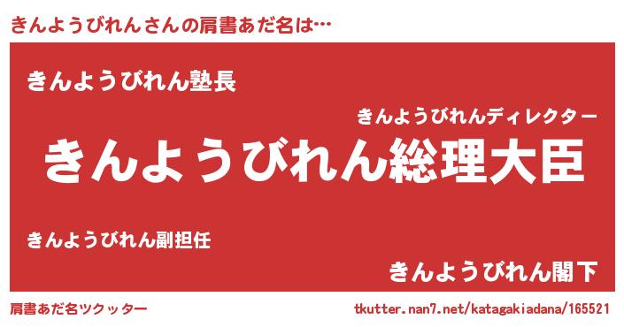 | 意味不明あだ名 | 『きんようびれんフォーエバー』 |