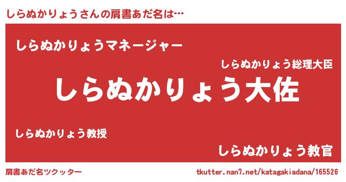 | 男性向けラノベタイトル風あだ名 | 『シラヌカリョウスレイヤー』 |