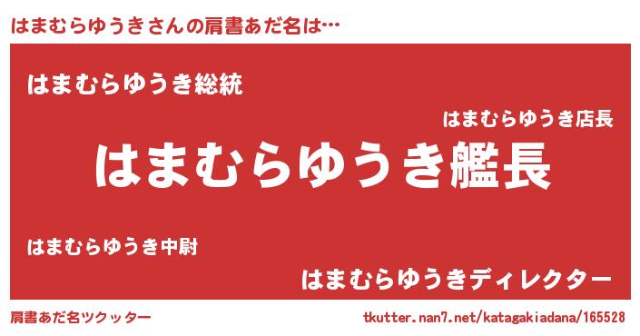 | 恥ずかしいあだ名 | 『ハマムラユウキデラックス』『はまちん』 |