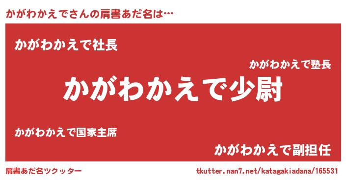 | 欧米人風あだ名 | 『トリンドルかがわかえで』 |