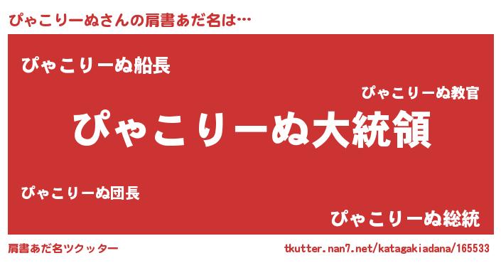 | 欧米人風あだ名 | 『ぴゃこりーぬクリステル』 |