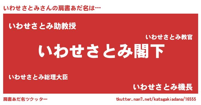 | 意味不明あだ名 | 『自称いわせさとみ』 |