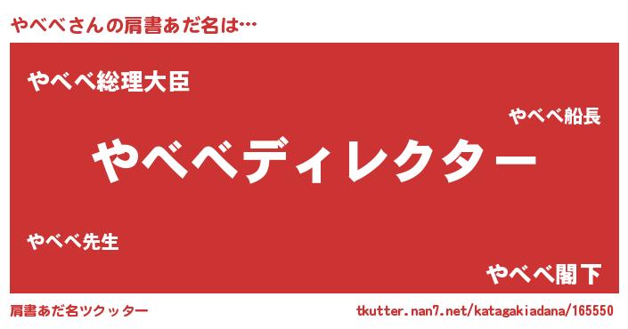 | ヘコむあだ名 | 『酢こんぶ』『やべべ(笑)』『やべを』 |