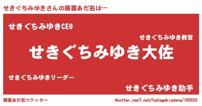 | 女子向けラノベタイトル風あだ名 | 『せきぐちみゆきの玉の輿計画!』 |