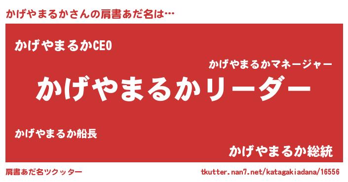 | 男性向けラノベタイトル風あだ名 | 『かげやまるかの嫁は女の子じゃないと思った?』 |
