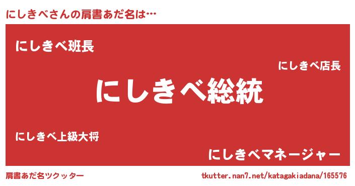 | ポケモン風あだ名 | 『ニシセウス』『ヒニシキベ』 |