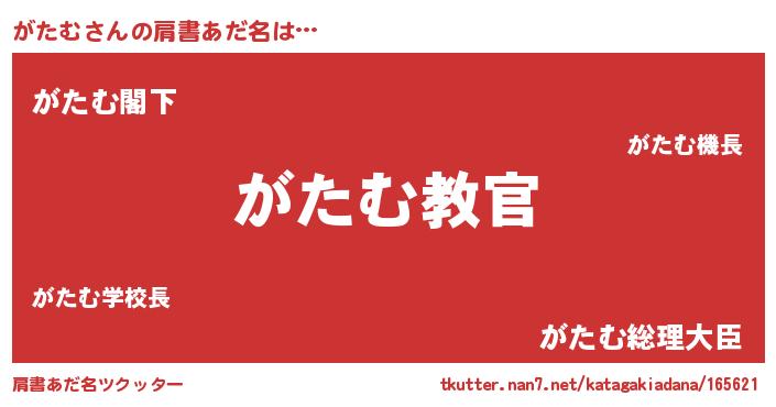 | 男性向けラノベタイトル風あだ名 | 『この素晴らしい世界にがたむを!』 |