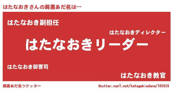 | 意味不明あだ名 | 『とにかく怪しいはたなおき』 |