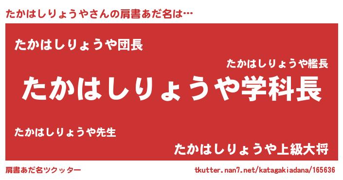 | 男性向けラノベタイトル風あだ名 | 『ノーゲーム・ノータカハシリョウヤ』 |