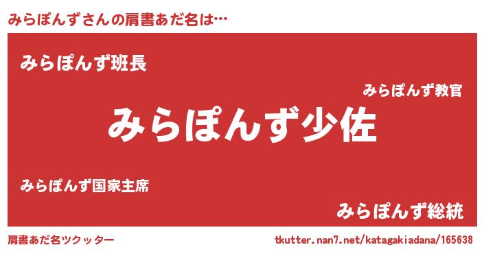 | 男性向けラノベタイトル風あだ名 | 『ミラポンズスレイヤー』 |