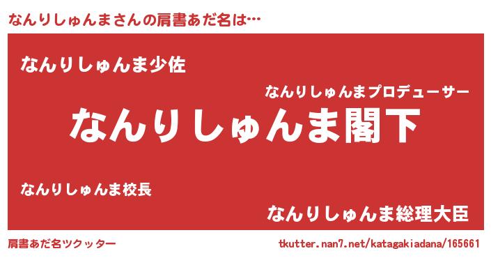 | 意味不明あだ名 | 『自称なんりしゅんま』 |