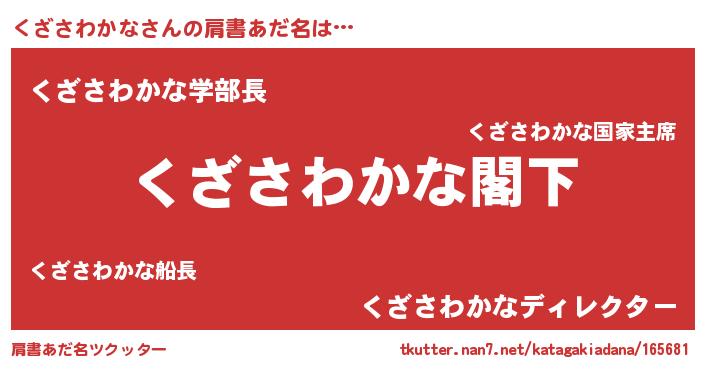 | 意味不明あだ名 | 『自称くざさわかな』 |