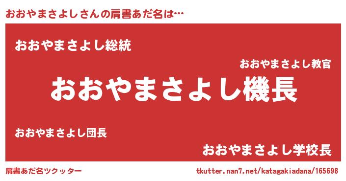 | 男性向けラノベタイトル風あだ名 | 『うちのおおやまさよしが世界を掌握している!』 |