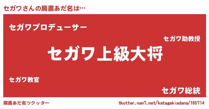 | ヒーロー風カッコイイあだ名 | 『サイバー戦士セガワ』『仮面セガダー』 |