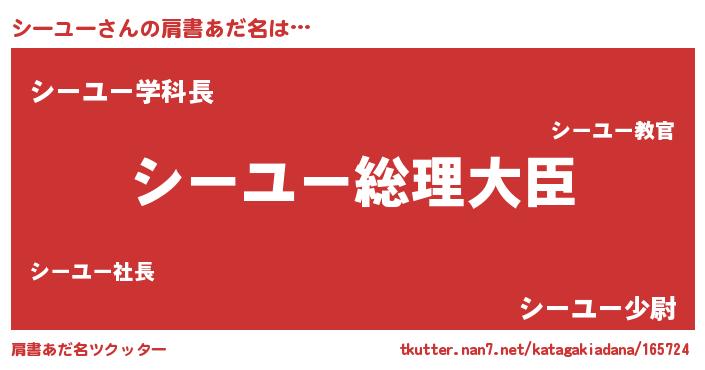 | 女子向けラノベタイトル風あだ名 | 『シーユーの雑貨屋さん』 |